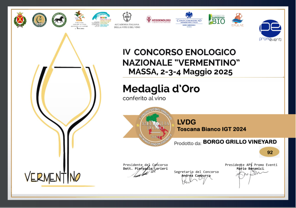 Hand-picked and organically grown, the Vermentino is softly pressed and fermented in steel at cool temperatures, then aged six months on lees. Straw-yellow with green-gold reflections, it offers a dry, savory palate with notes of white flowers and orchard fruit. Fresh, precise, and expressive of the coastal site. 92 points-Concorso National Vermentino